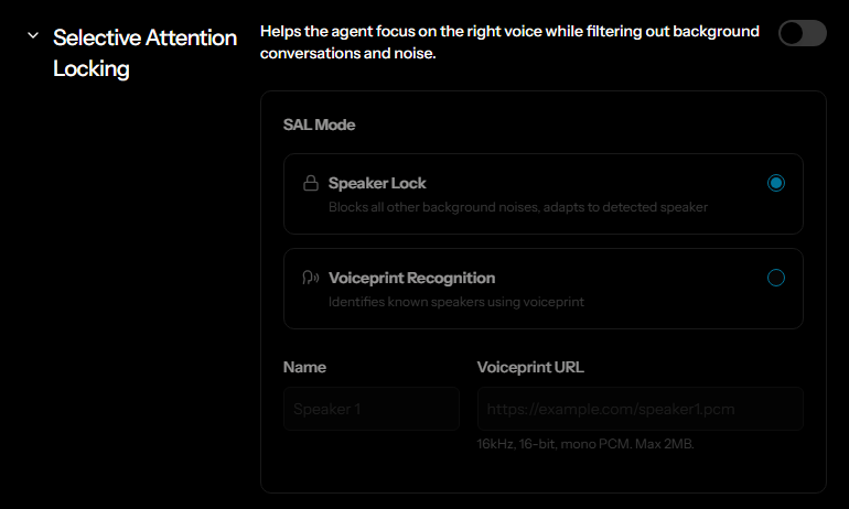 Helps the agent focus on the right voice while filtering out background conversations and noise.